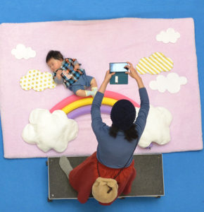 その上に赤ちゃんを寝かせると、まるで雲と虹に座っているように見えます。