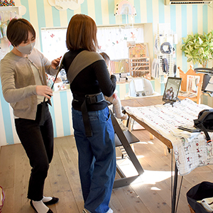 さらにスタッフと一緒にお子さまと実際に装着してみました。