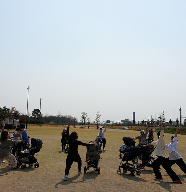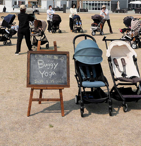お子様をベビーカーに乗せたまヨガができるので、お子さまと一緒にリフレッシュできる時間です。