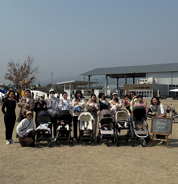 今回は、群馬県「道の駅 まえばし赤城」にて、日本産後ダイエット協会 代表 新井雅美先生をお迎えし、「バギーヨガ」を開催しました。
