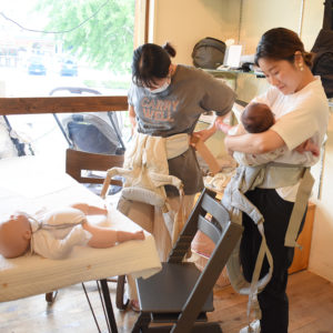 実践後は肩バックルや肩ひもの調整に苦戦している方が多かったですが、講師の方から丁寧に教えていただき快適な抱っこを習得され満足していただくことができました。