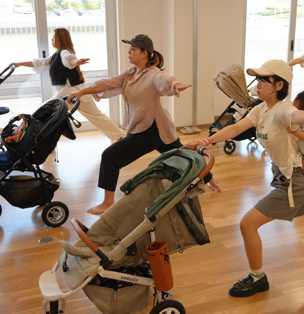 お子様と一緒にご参加いただける「バギーヨガ」イベントを毎月開催しています。