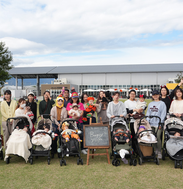 お子様と一緒にご参加いただける「バギーヨガ」イベントを毎月開催しています。